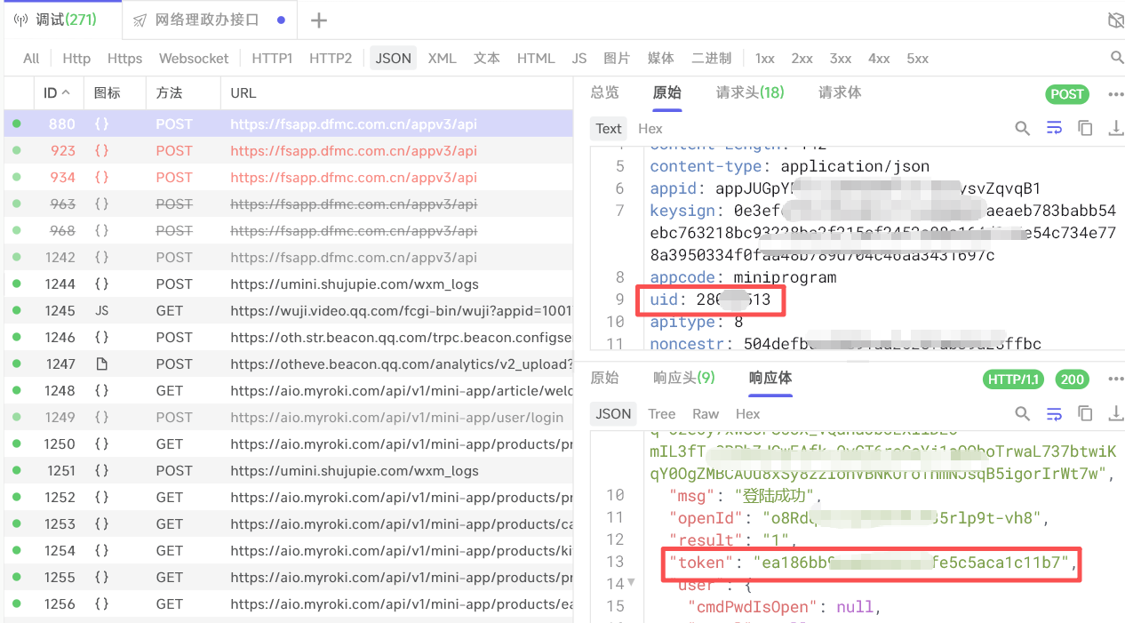 开启抓包,打开小程序,登录